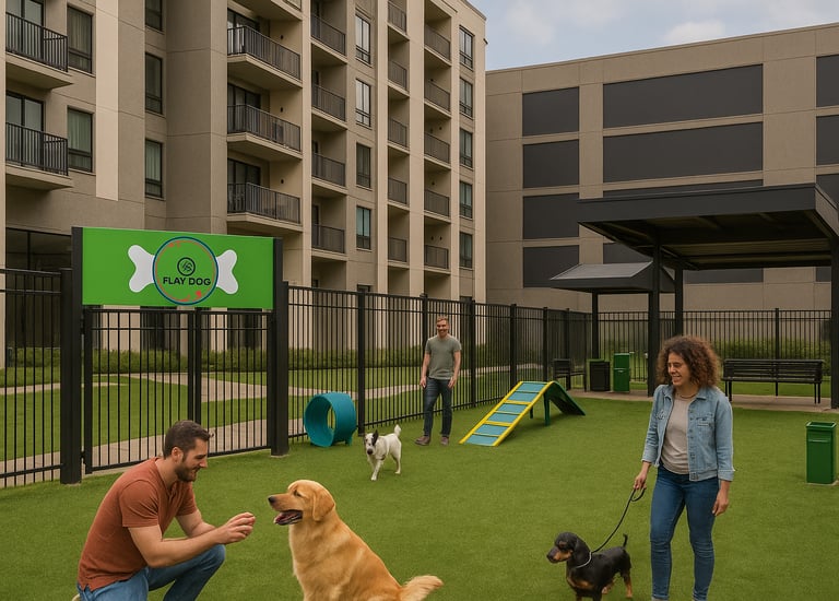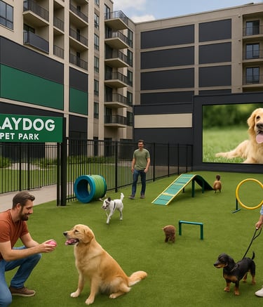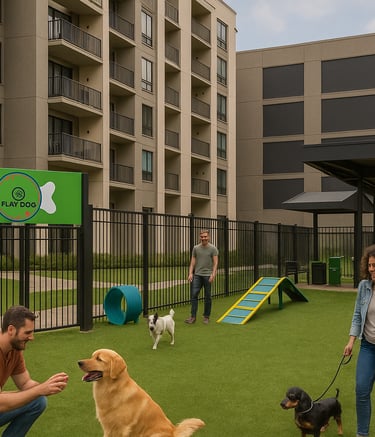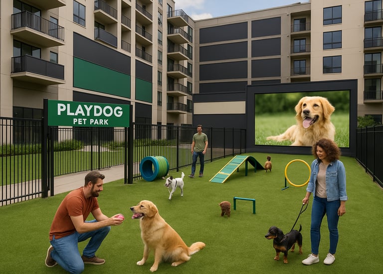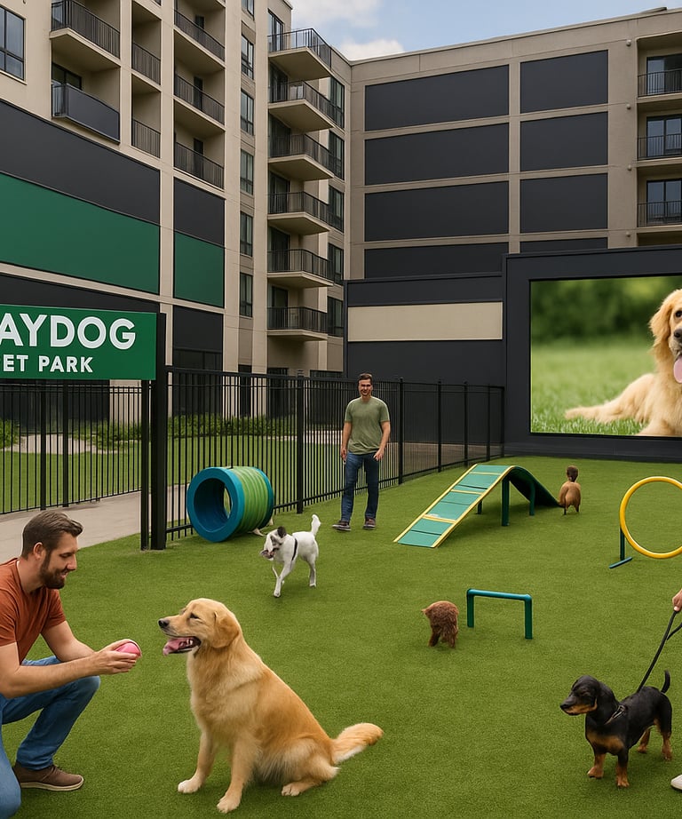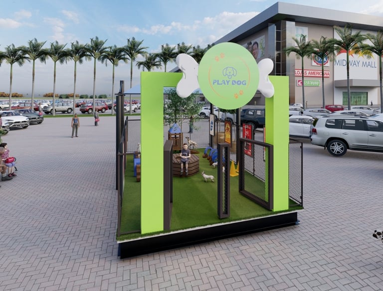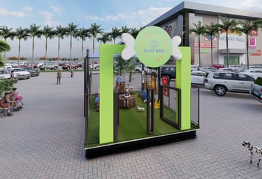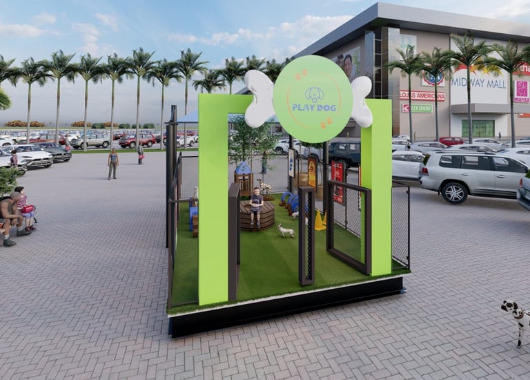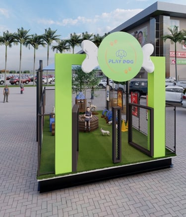 A Playdog cria parques interativos para pets em locais urbanos, oferecendo espaços seguros para diversão e socialização entre pets e tutores.